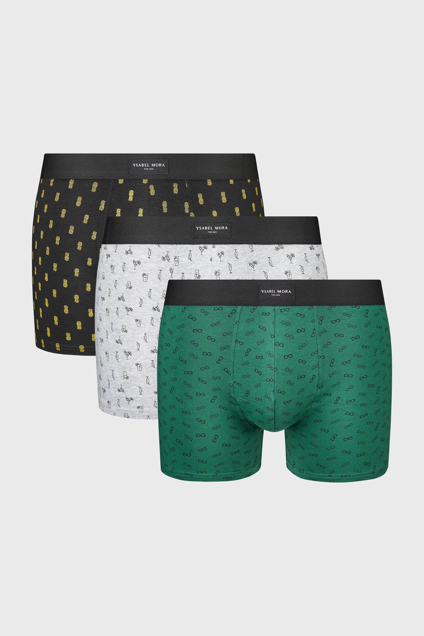 Die Packung enthält drei Boxershorts in unterschiedlicher Ausführung, siehe Foto.