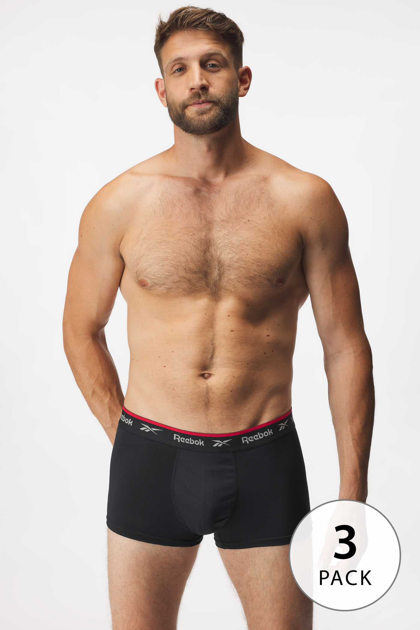Herrenpants der Marke Reebok in unifarbener Ausführung mit Kontrastgummi am Bund im Dreierpack. Durch den leichten Stoff und das atmungsaktive Mesh-Panel im Schrittbereich die ideale Wahl für Sport.