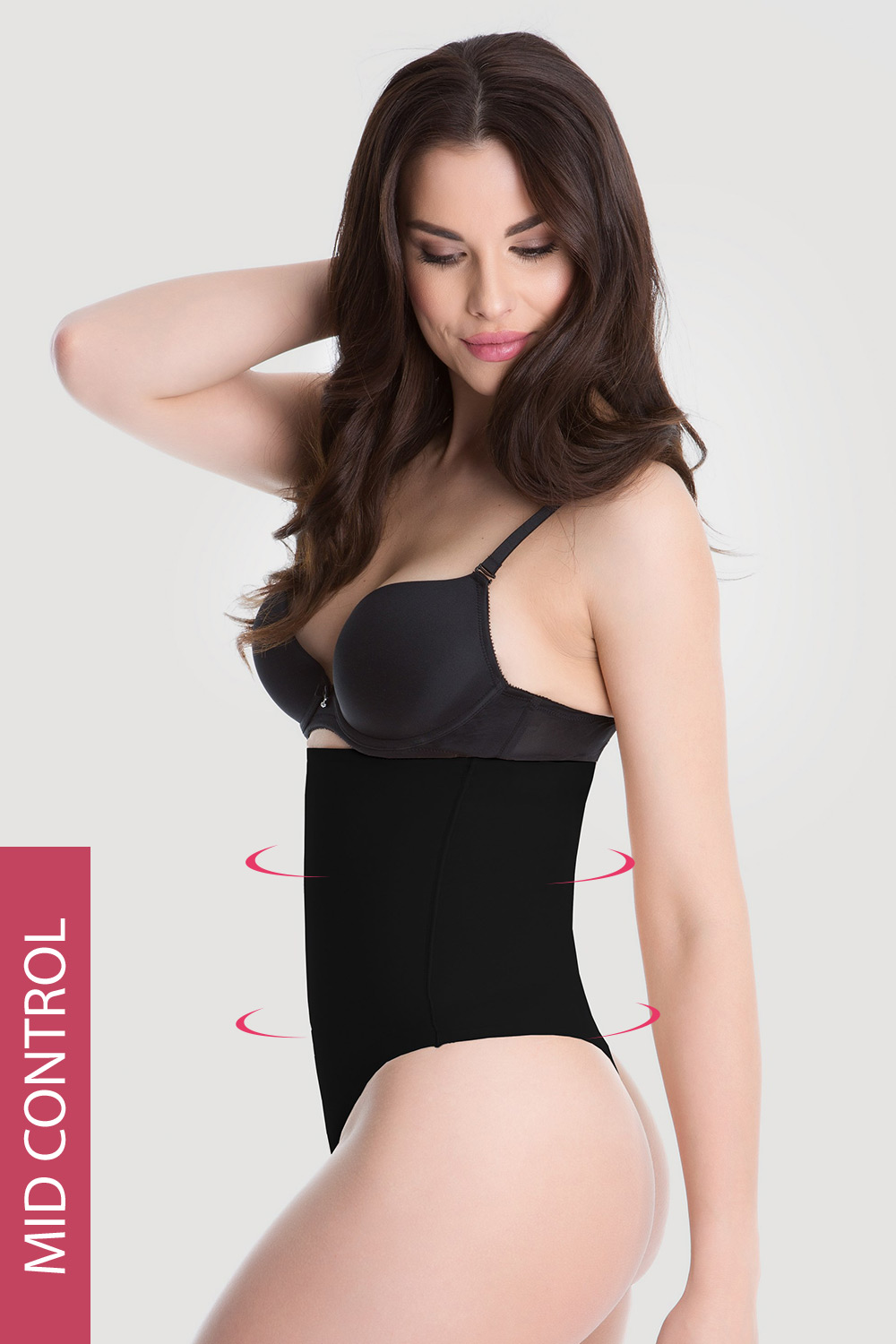 Figurformender Slip Kathy mit hohem Bund und geklebtem Saum und flachen Nähten. Ideal für das Tragen unter eng anliegender Kleidung. Mit mittlerem figurformendem Effekt. Kaschierend und formend an Bauch und Taille.