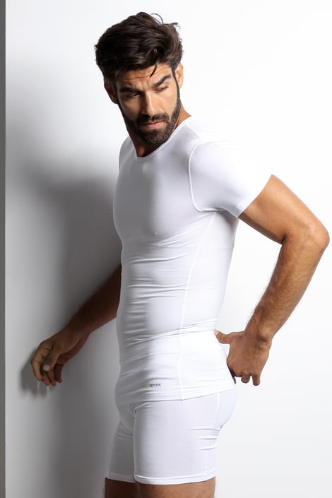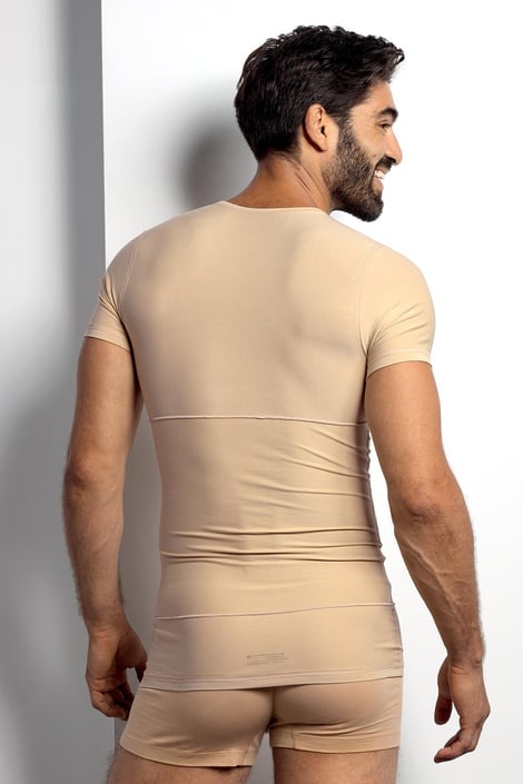 Figurformendes Herren-T-Shirt aus weichem Modal und angenehmer Baumwolle kaschiert Ihre Silhouette. Das Mittelteil besteht aus elastischem Stoff und formt den gesamten Bauchbereich. Flache Nähte für hohen Tragekomfort.