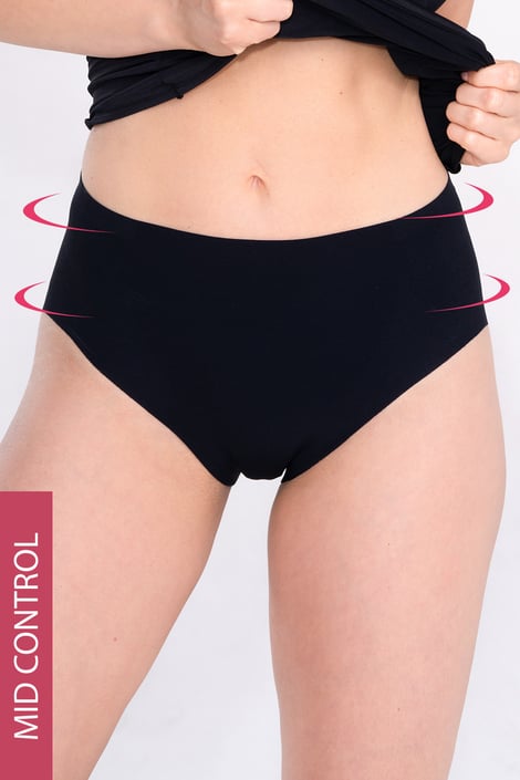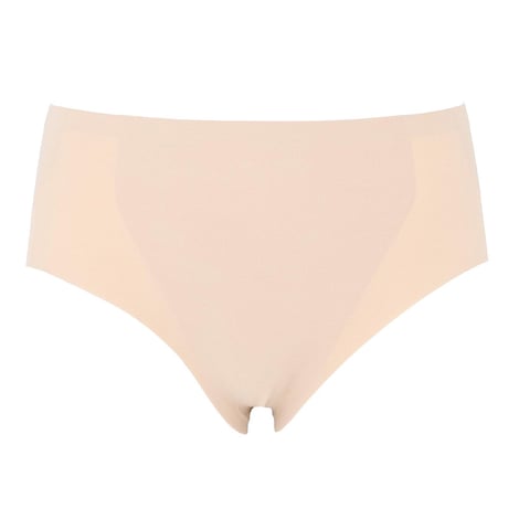Der klassisch geschnittene Formslip Invisible formt die Figur und lässt sie optisch schlanker wirken. Das Vorderteil ist mit verstärkendem Stoff mit thermogeklebten Nähten unterfüttert, das zur Straffung von weicherem Bauch beiträgt. Die Beinabschlüsse sind lasergeschnitten und der Slip zeichnet sich so unter eng anliegender Kleidung nicht ab.