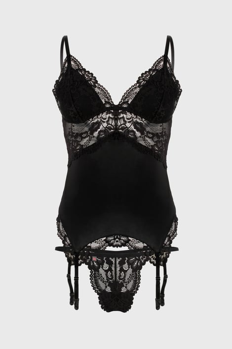 Verführerisch, elegant und sehr weiblich. So ist das Luxusset bestehend aus Corsage und Slip mit Spitzendetails, mit dem Sie vielen Männern den Kopf verdrehen.